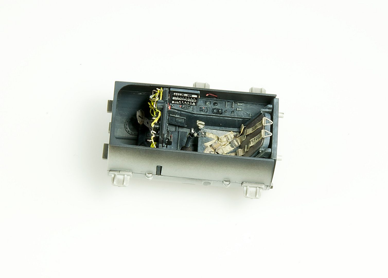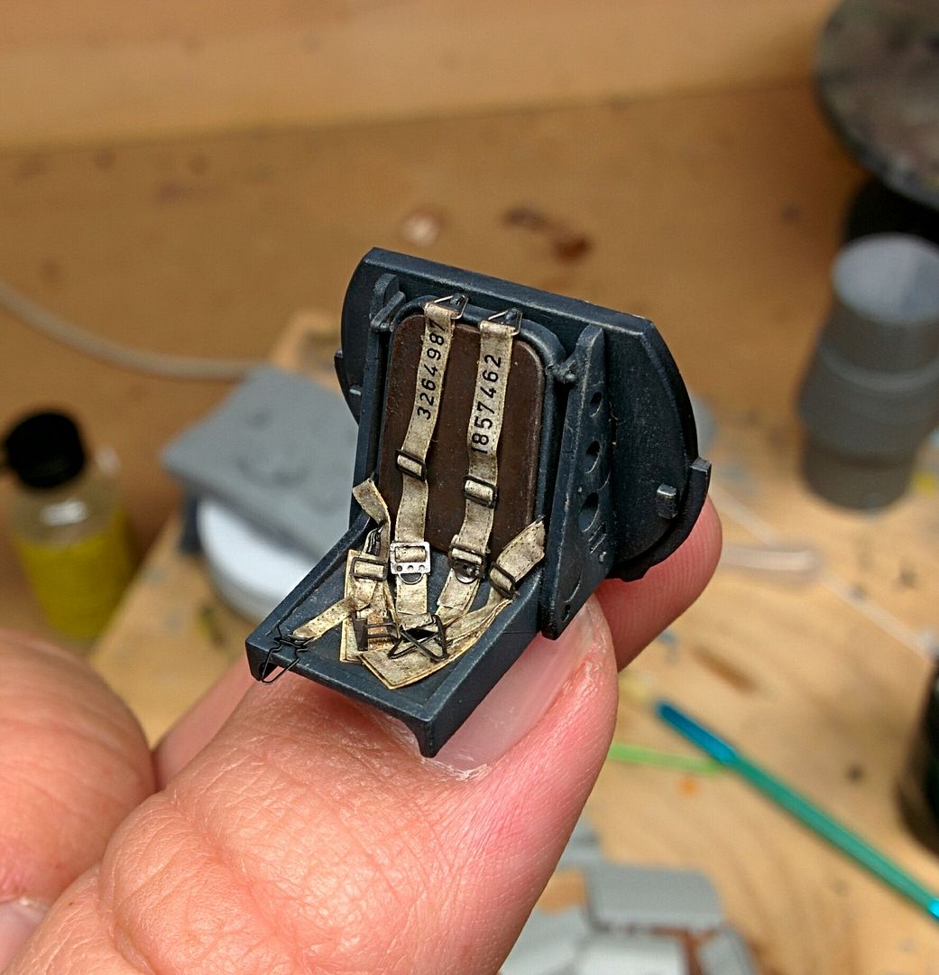 After the wiring, I moved on to the seatbelts. I had a set of HGW’s laser-cut Luftwaffe belts lying around, so used those.