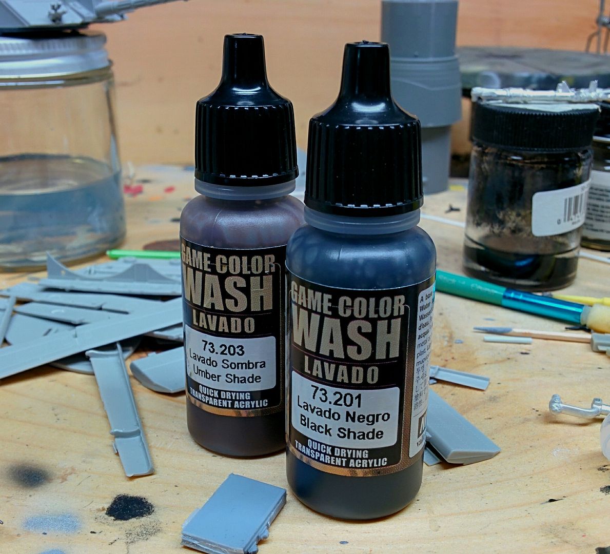 Typically I’d use oils to weather the belts, but I had some additional weathering I wanted to do to simulate a jet left out in the elements for some time, so I decided to try Vallejo’s Game Color Wash in a mixture of umber and black.